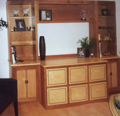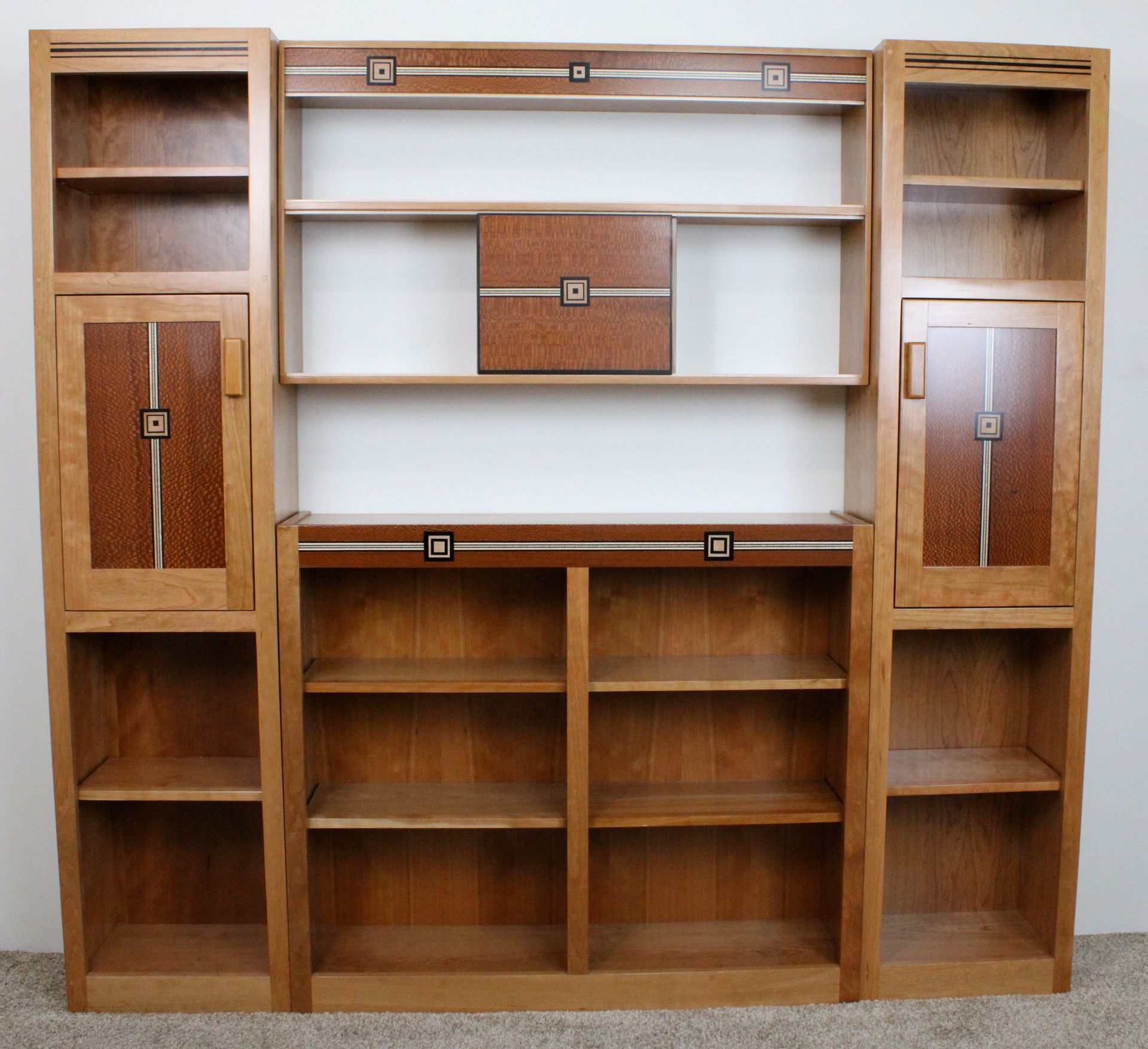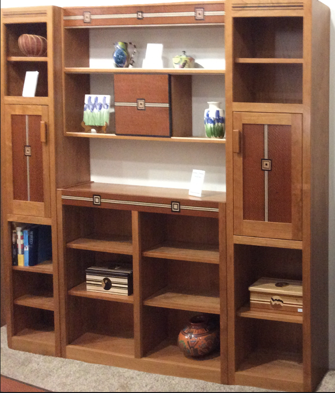 Cherry Bookcases inlaid with Ebony Stripes.